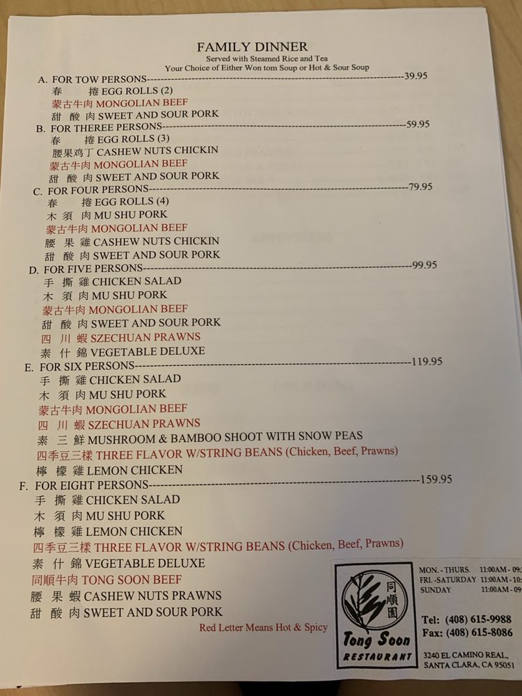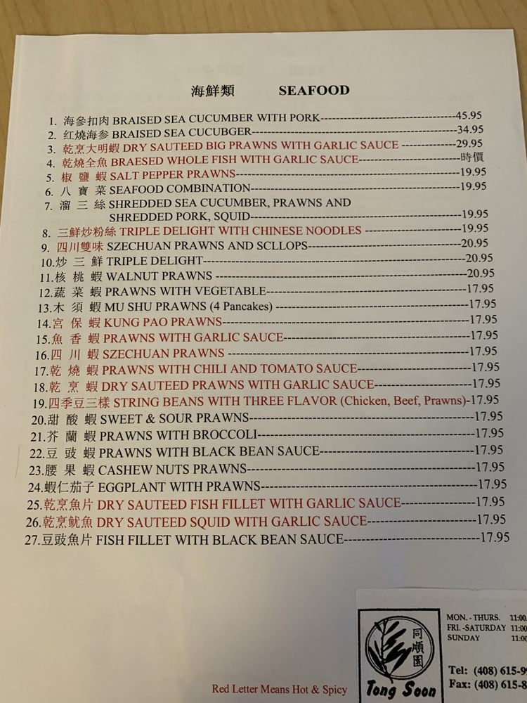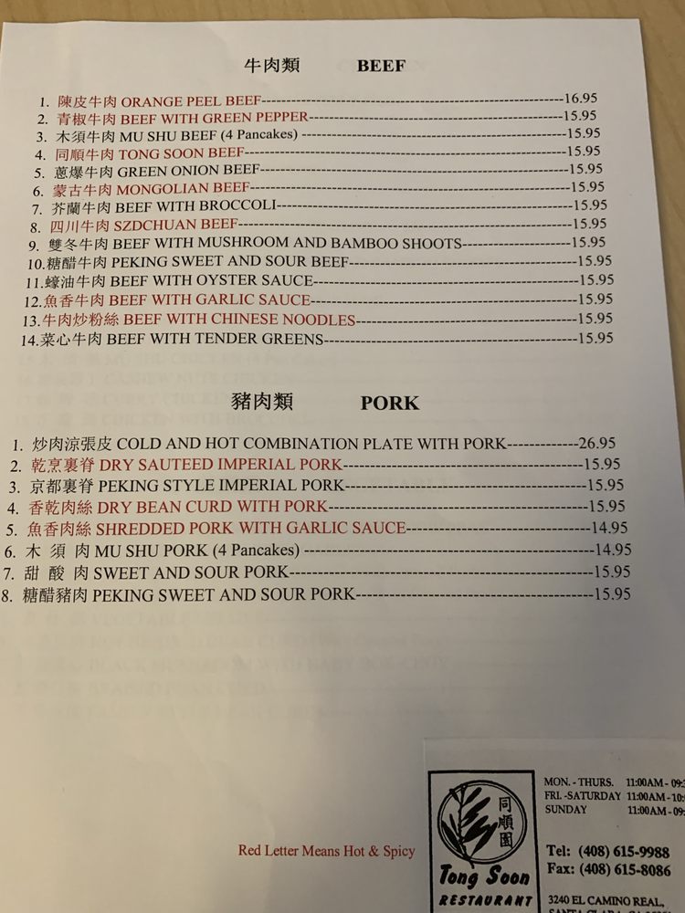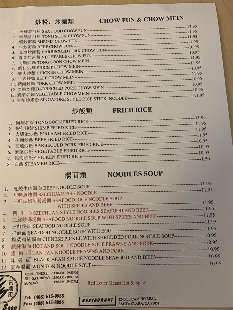 Introducing Tong Soon Garden, a Chinese-Korean restaurant located in Santa Clara. Offering a range of appetizers, soups, vegetables, and more, this restaurant is a gem for food lovers. Specialties like the Seafood Noodle Soup and Jajangmyeon have garnered praise from customers for their rich flavors. The Crispy Oil Chicken stands out for its juicy, crispy texture and well-paired sauce. Portions are generous, with dishes like the Black Bean Noodles impressing with a variety of seafood. The service is commendable, and the pear slush dessert is a refreshing treat to end your meal. Tong Soon Garden is a must-visit for those craving authentic Korean-Chinese dishes in a cozy setting.